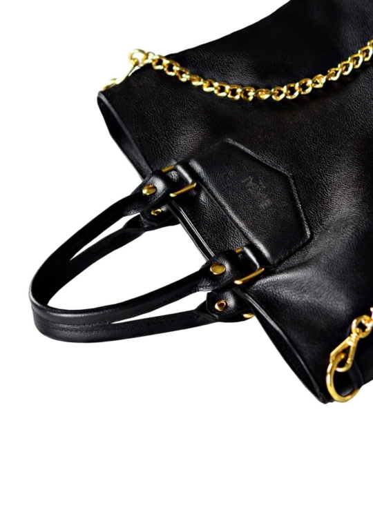 Produzida à mão, em couro nobre com estampa discreta na cor preto e extremamente macia. Um olhar especial para o charme da Alça em corrente dourada Altero de 11mm de largura e ombreira anatômica em couro. Seu forro traz o DNA das cores de iATAi. Projetada com versatilidade oferece um visual da silhueta clássica de bolsa. Exala modernidade chique inspirada na elegância equestre. Cravada com nossa assinatura iATAi no couro.