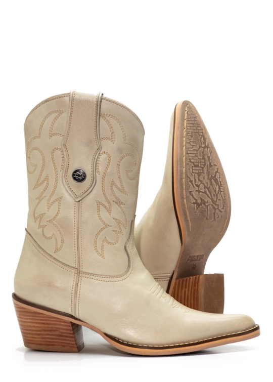 Bota Western Feminina iATAi Cano Curto em Couro na Cor Off-White com Detalhes em Bordado – Wild West Wonder