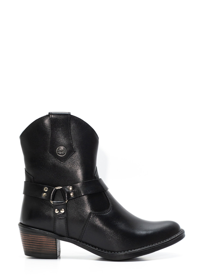 Bota Country Feminina iATAi em Couro na Cor Preto e Fivela – Cactus