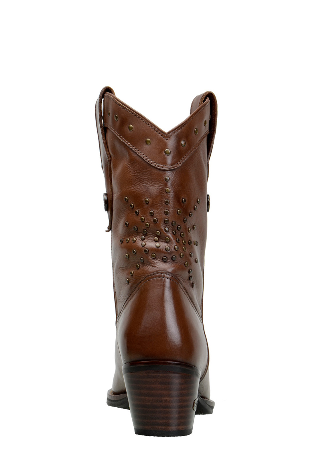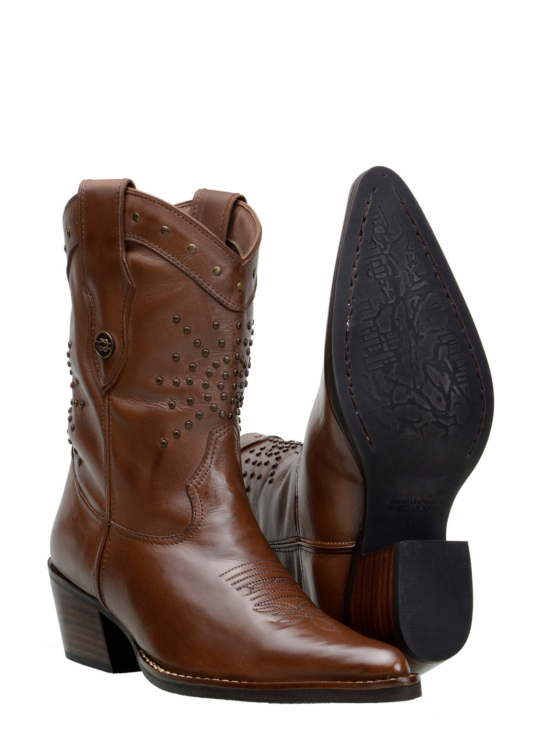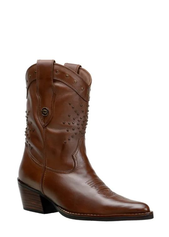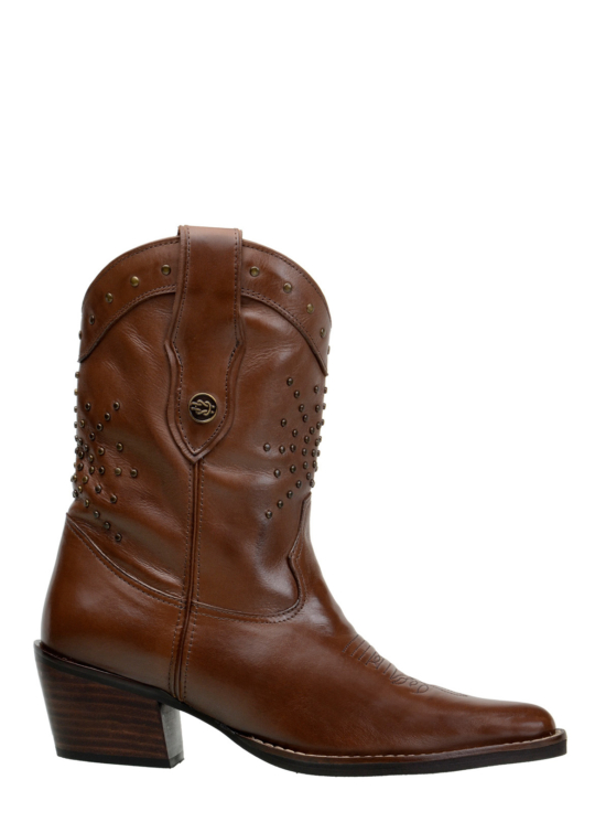 Bota Western Feminina iATAi Cano Curto em Couro na Cor Pinhão com Detalhes em Metais – Forest Essence