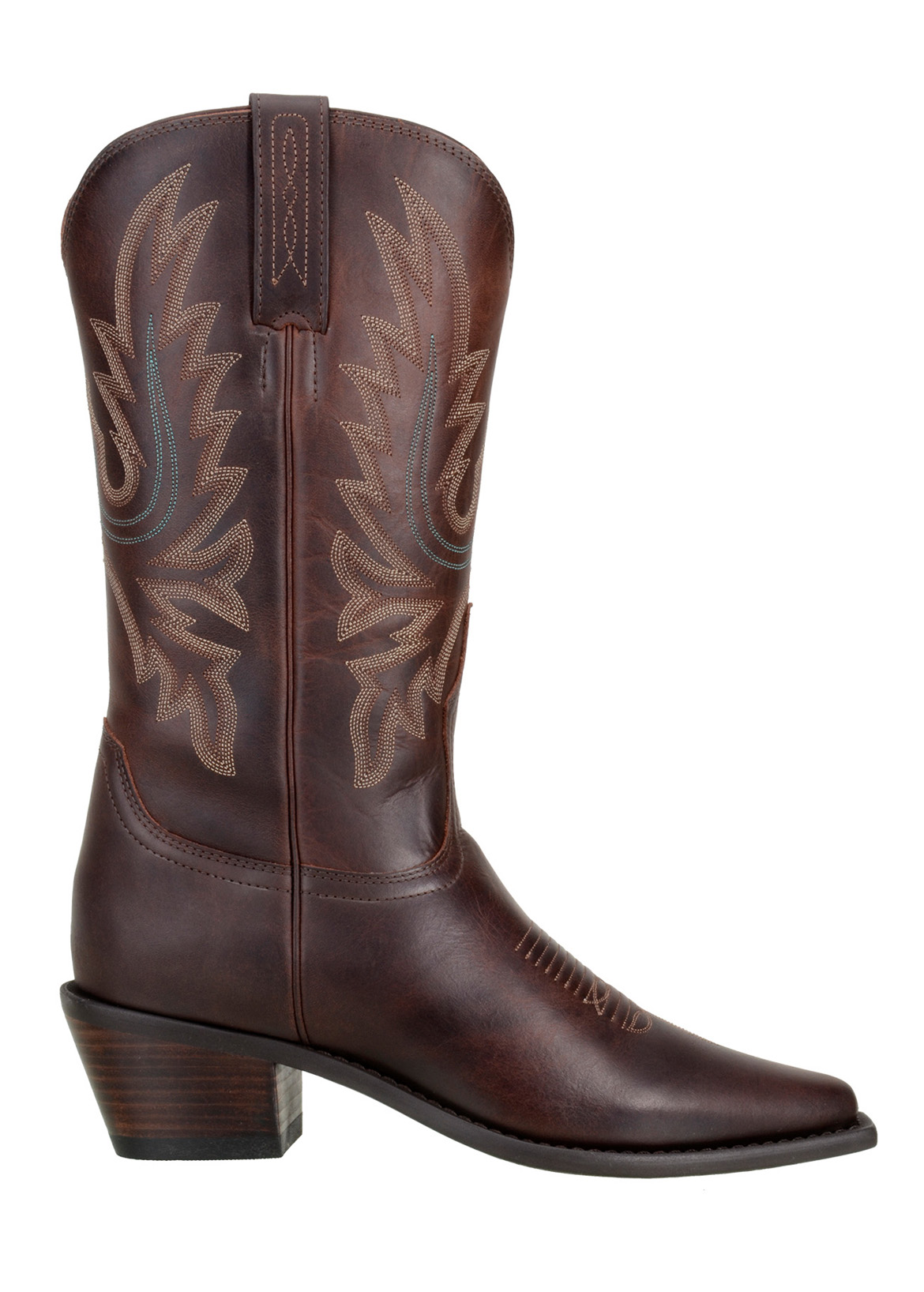 Bota Western Feminina iATAi Cano Médio em Couro na Cor Café com Detalhes em Bordado – Country Charm